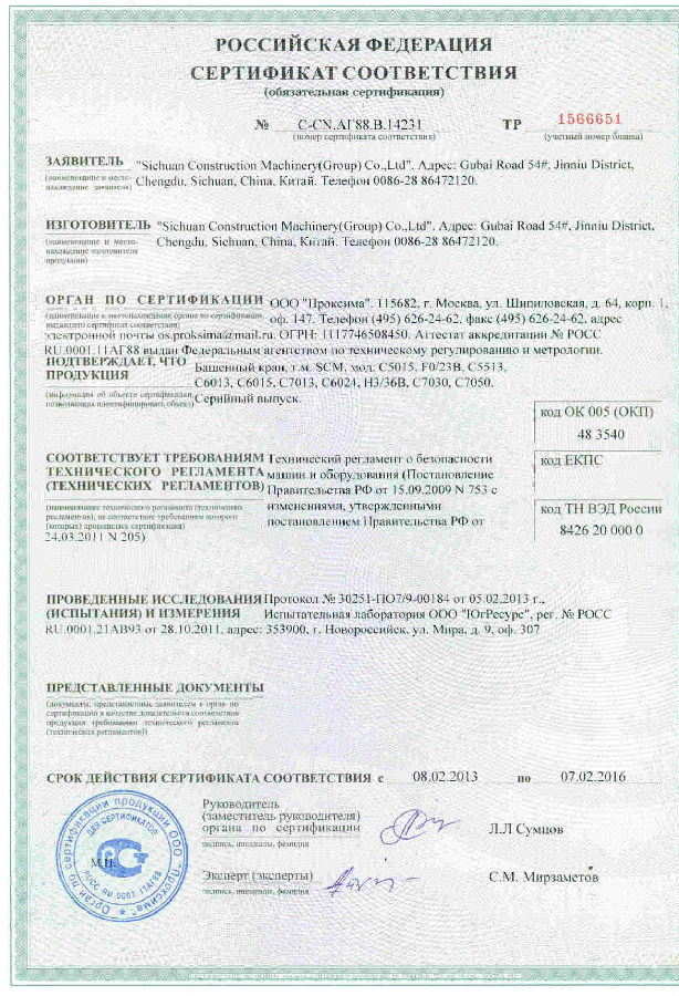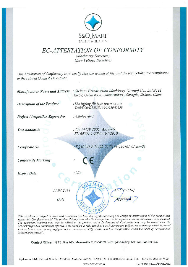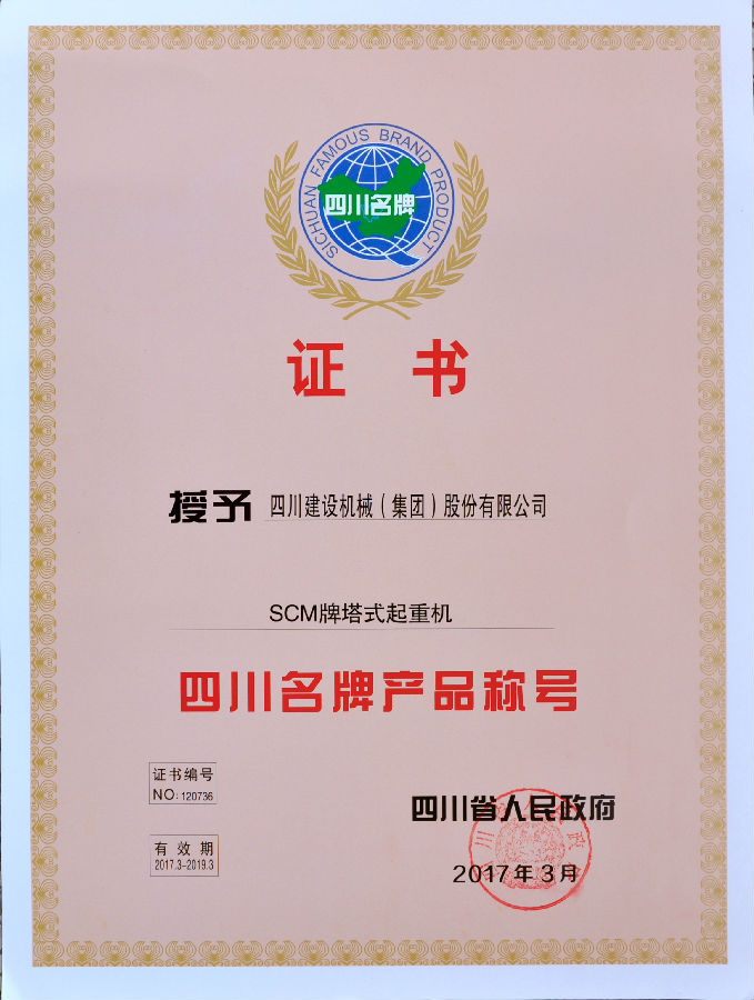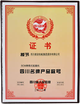 SCM塔機(jī)被四川省人民政府授予四川名牌產(chǎn)品稱(chēng)號(hào);