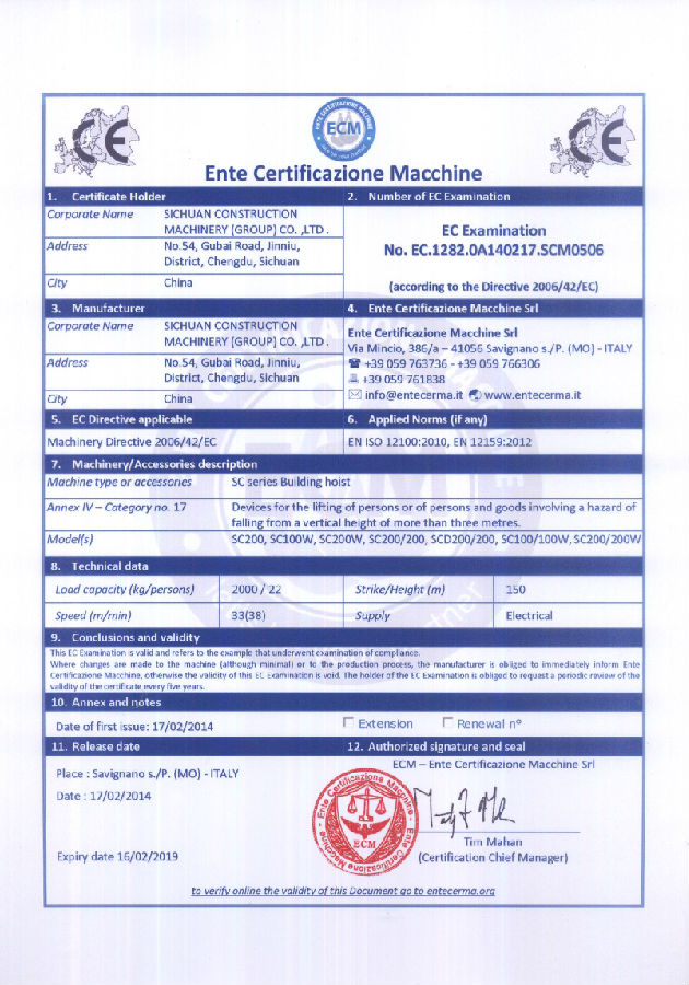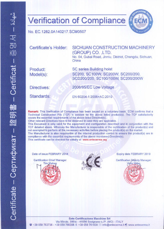 順利通過(guò)ISO9001國(guó)際質(zhì)量體系認(rèn)證,體系覆蓋產(chǎn)品:塔機(jī)、施工梯、混凝土攪拌機(jī)、膠印機(jī)系列產(chǎn)品;