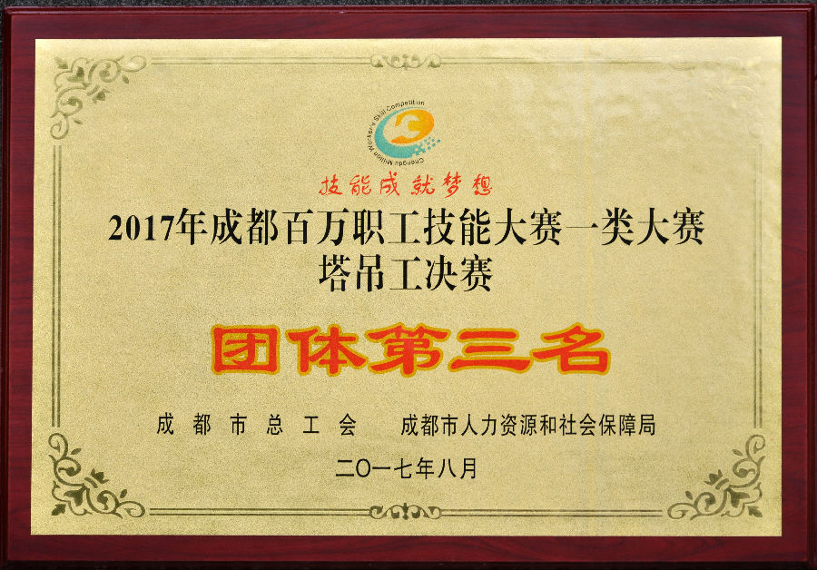 8月 榮獲成都市塔吊工技能大賽團(tuán)體第三名;