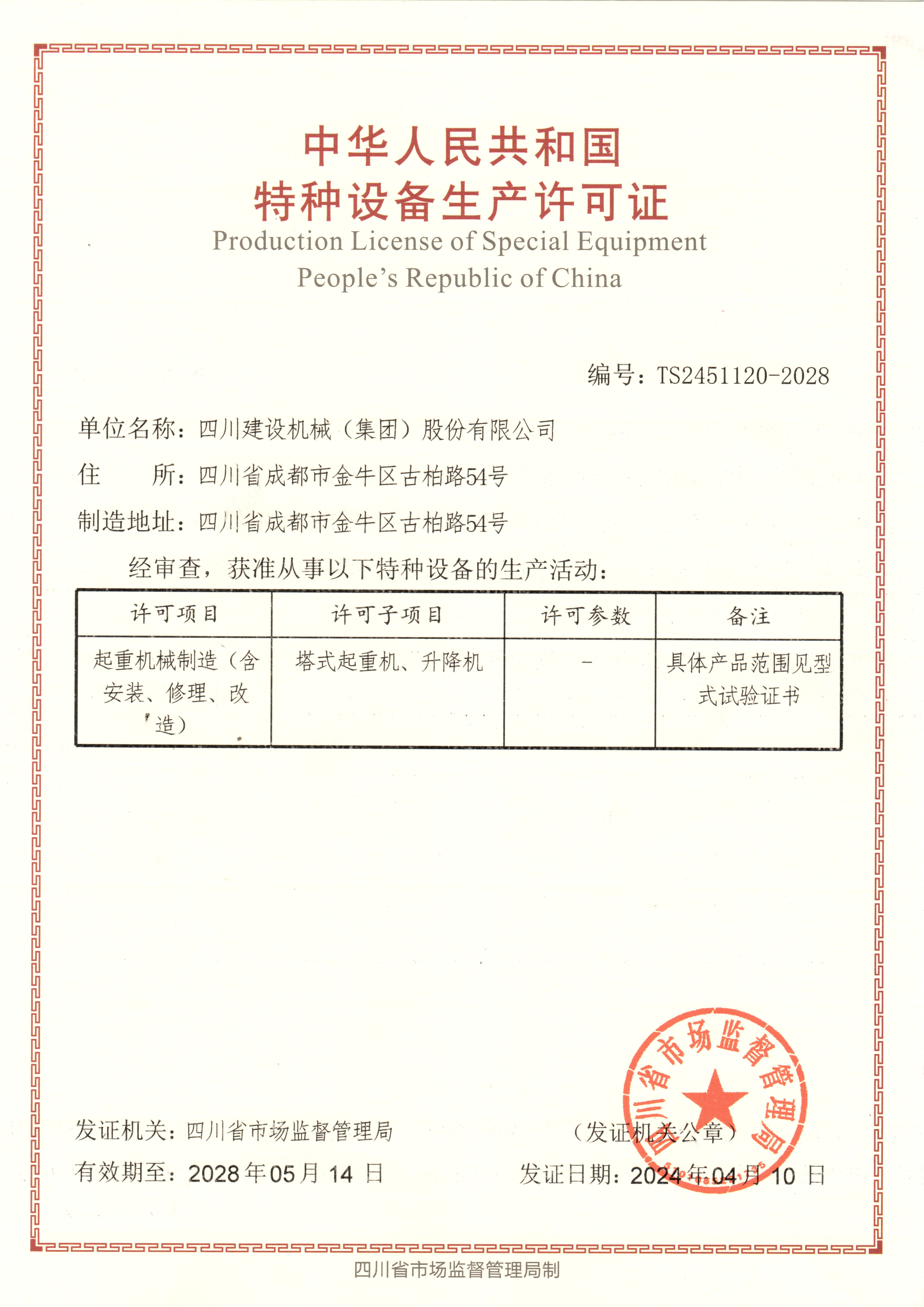 3月5日,四川省人民政府發(fā)布《第七屆四川名牌產(chǎn)品公告》,SCM牌塔式起重機(jī)榮獲四川名牌產(chǎn)品稱(chēng)號(hào);