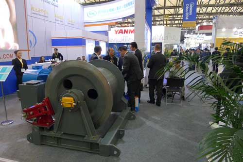 本次展會SCM位于室內E2館,展位經過精裝搭建,向廣大觀眾重點展示了塔機產品在火電核電、水利水電、橋梁、高層建筑等領域的應用,同時介紹了施工升降機、混凝土機械、塔機機構等產品,充分展現了SCM的綜合實力。起升機構作為塔機實現起重功能最主要的部件,本次展會SCM攜帶了最新研發的起升機構122LVF40參展。該機構為全變頻無級調速,高、低速雙制動器。機構電機功率90kW,最大單繩起重量40kN,單繩工作速度0—180m/min,額定繞繩量700m,適用于C7056、C7036、C7030(16t)、C7022、D230、P7527等機型。SCM多年來致力于工程起重機械的產品設計、生產,本著為整機配套性能先進、技術可靠的起升機構,制作全程均實施嚴格的質量控制,目前已研發出PC、RCS、LVF三大系列,總計60多個型號,先進的起升機構使SCM的塔機更加安全、可靠、性能優越。
