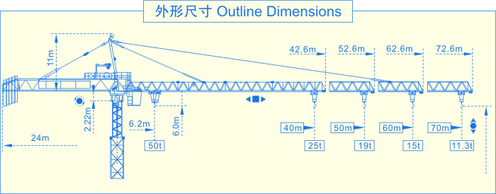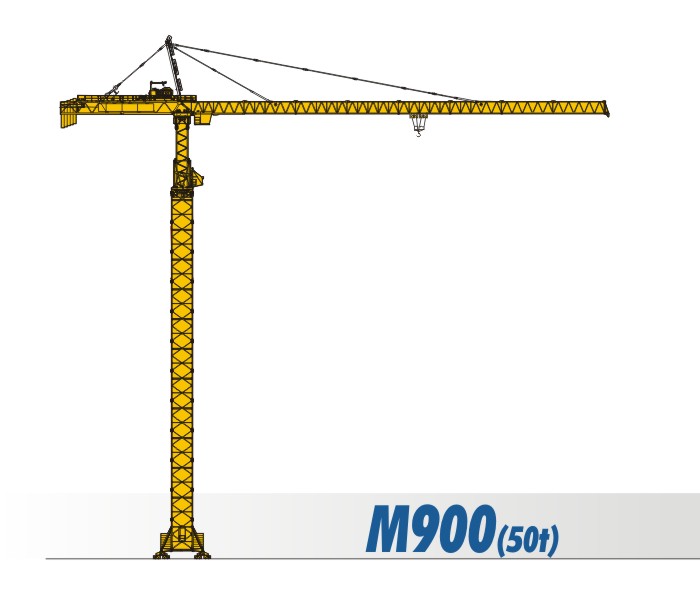 SCM-M900(50t)塔式起重機(jī),是我公司吸收國外塔機(jī)技術(shù),自行設(shè)計(jì)制造的大型上回轉(zhuǎn)自升式塔式起重機(jī)。該機(jī)型設(shè)計(jì)新穎,起升、回轉(zhuǎn)、變幅、行走、頂升等機(jī)構(gòu)均采用國外技術(shù),性能先進(jìn)可靠。 該機(jī)具有軌道行走式、固定附著式,多種使用類型。變幅有單小車和雙小車兩種,單小車情況下最大起重量50t,端部吊重10t;雙小車情況下最大起重量50t,端部吊重11.3t。